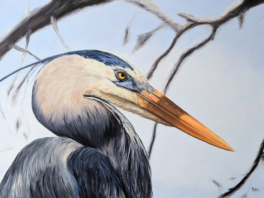 Sentinel of the Marsh - Great Blue Heron Painting - Original Oil on Canvas - 36x48 Inches