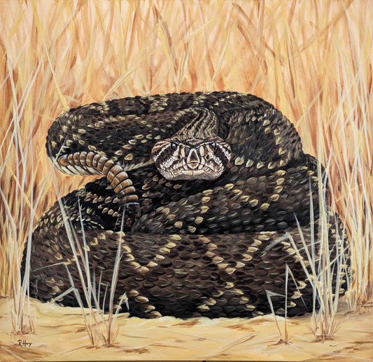 Cascabel - Eastern Diamondback Snake Painting - Original Acrylic on Canvas - 30x30 Inches