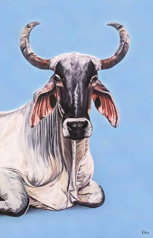 Celeste - Brahman Cow Painting - Original Acrylic on Canvas - 65x100 Inches