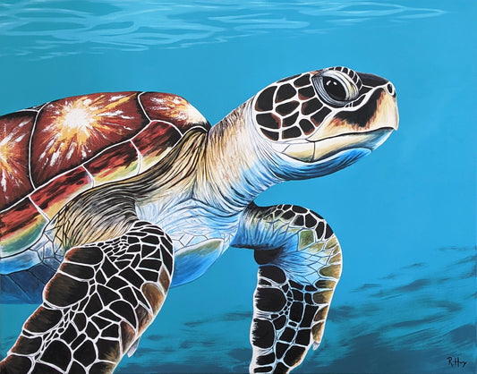 Reef Rider - Green Sea Turtle Painting - Original Acrylic on Canvas - 46x56 Inches